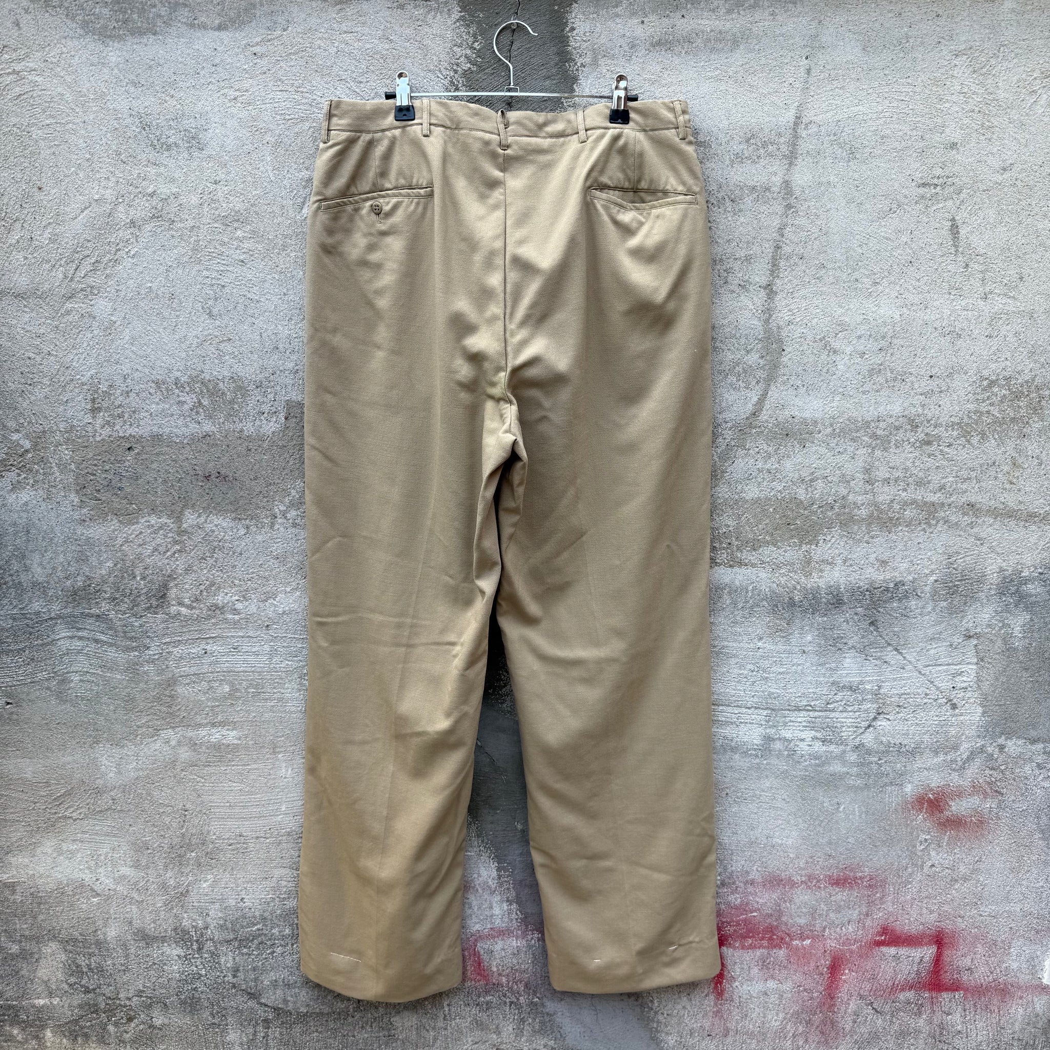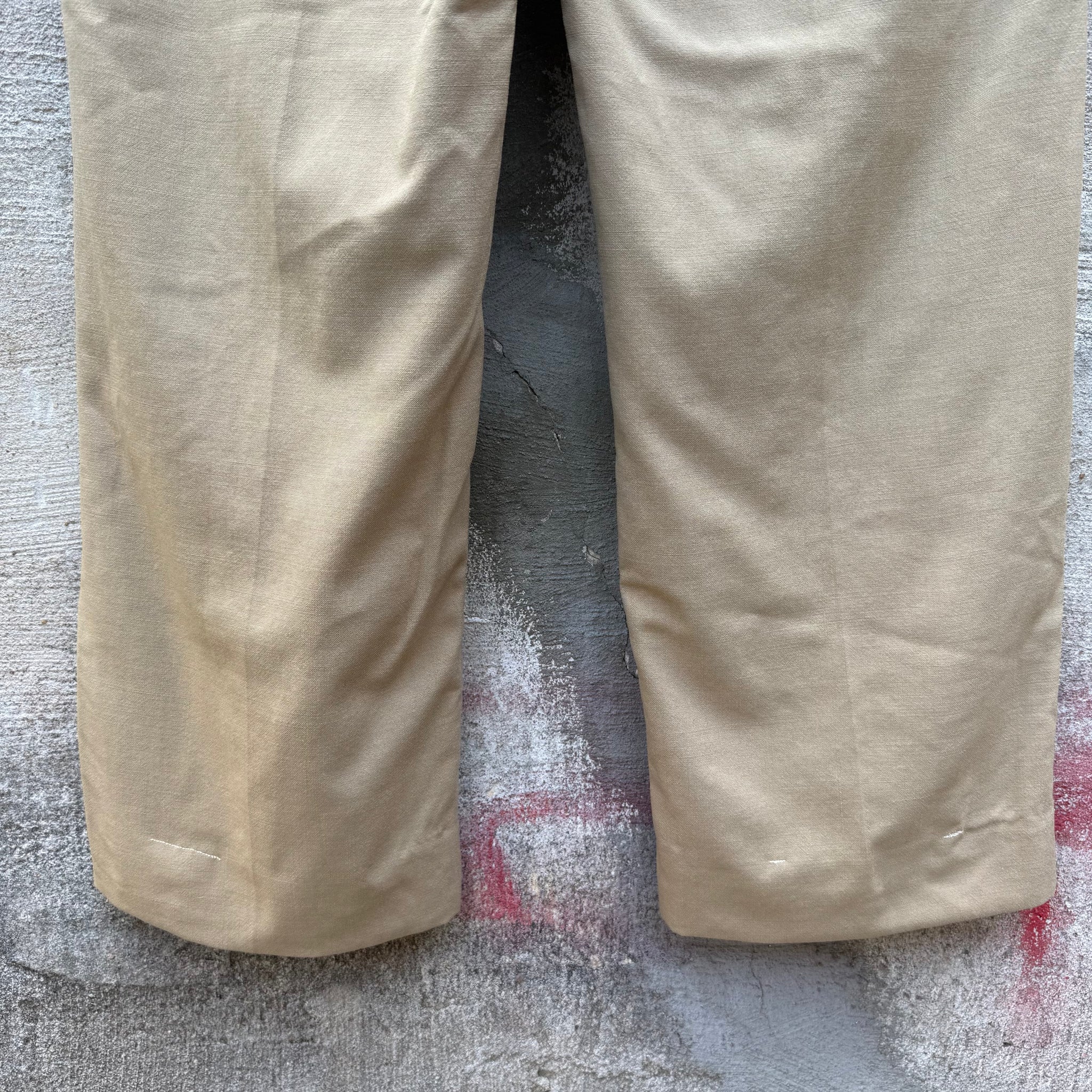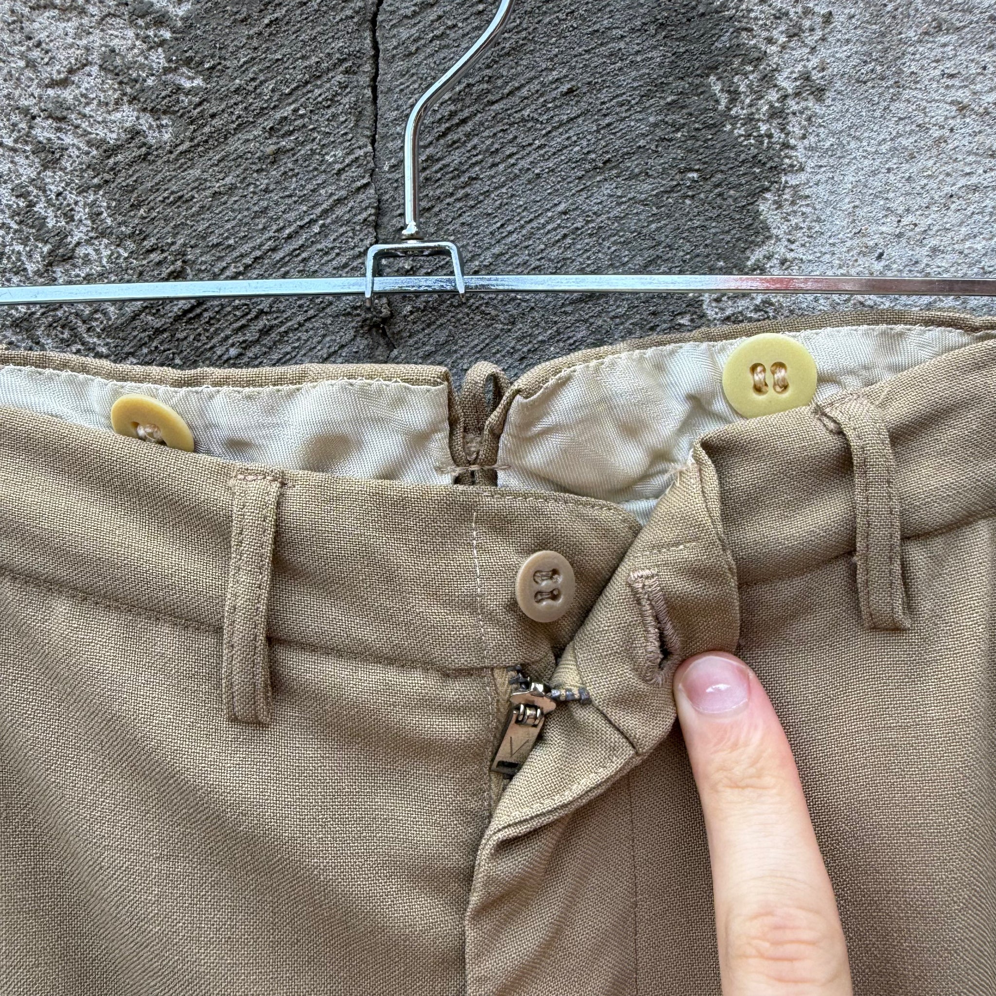 General wear, check all measurements before purchasing, no refund will be allowed all information is provided in each description. Vintage trousers, made in USA43, military issued 1950's, white paper tag shown in photos on inside pocket, zipper fly, cotton blend, some wear throughout shown in photos, zipper fly, great quality trousers, vintage military pants.