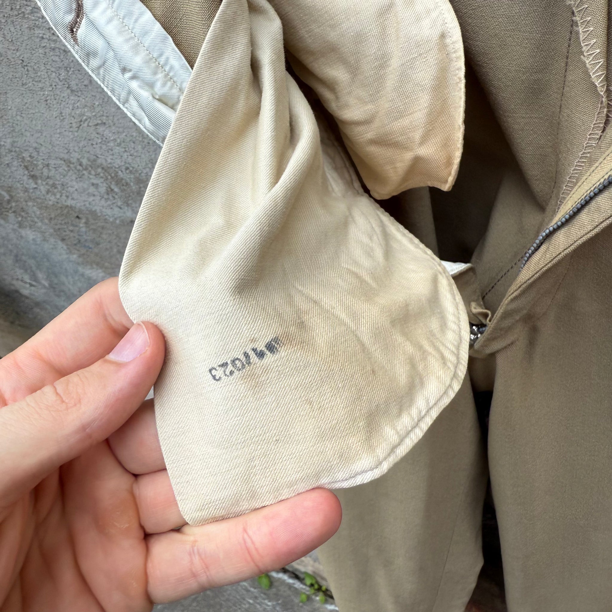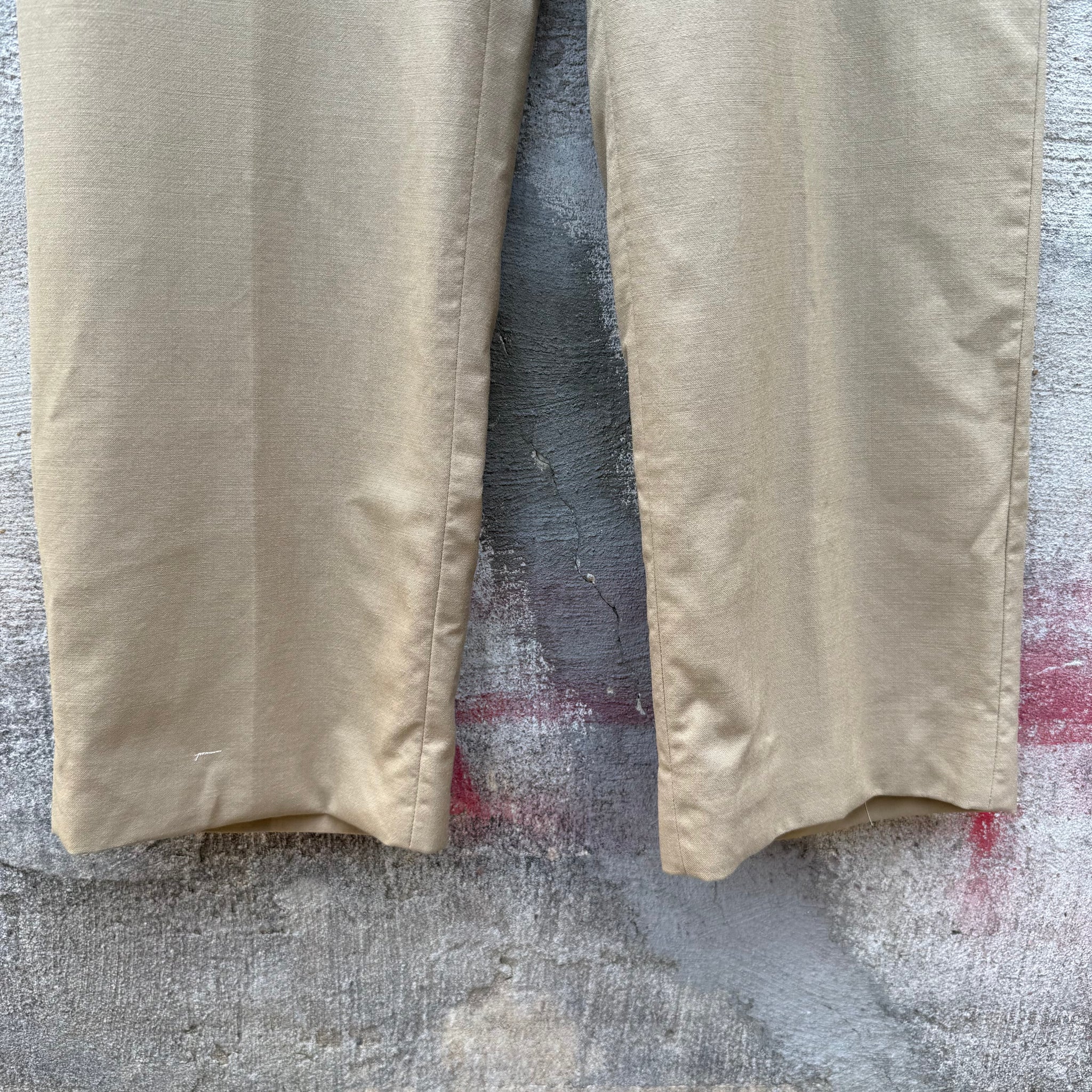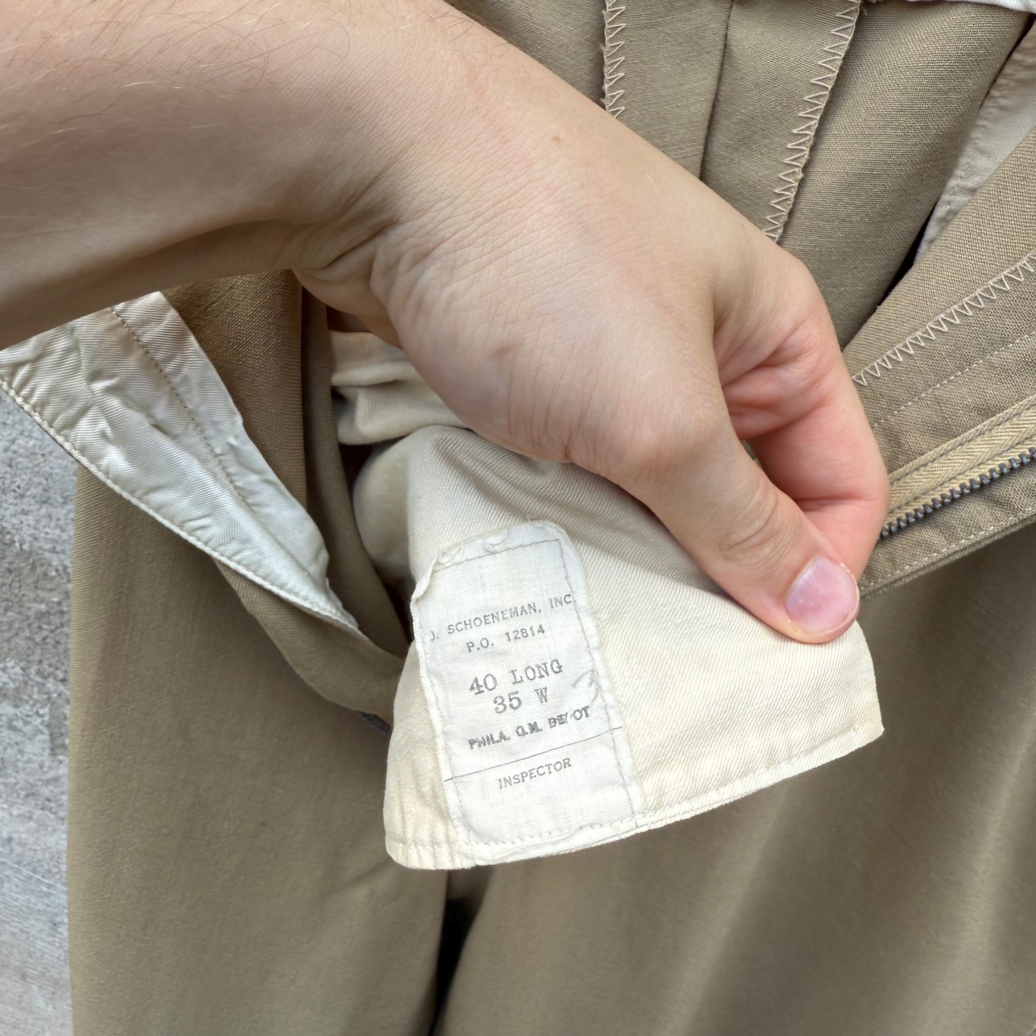 General wear, check all measurements before purchasing, no refund will be allowed all information is provided in each description. Vintage trousers, made in USA43, military issued 1950's, white paper tag shown in photos on inside pocket, zipper fly, cotton blend, some wear throughout shown in photos, zipper fly, great quality trousers, vintage military pants.