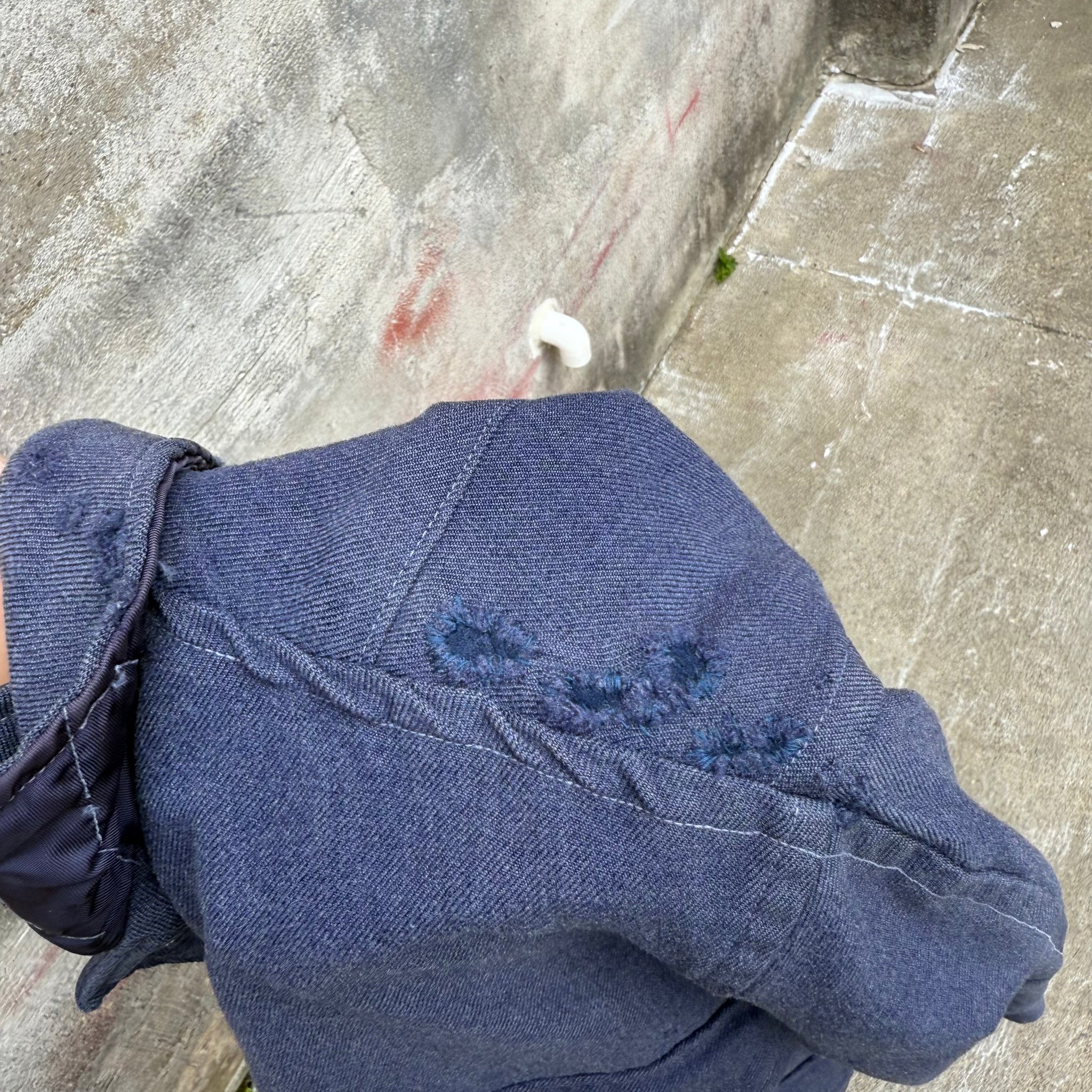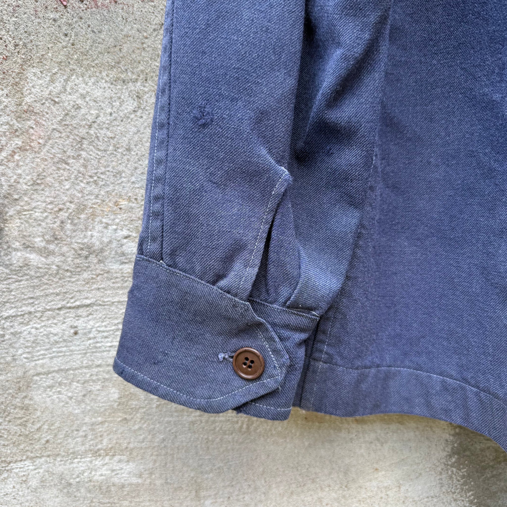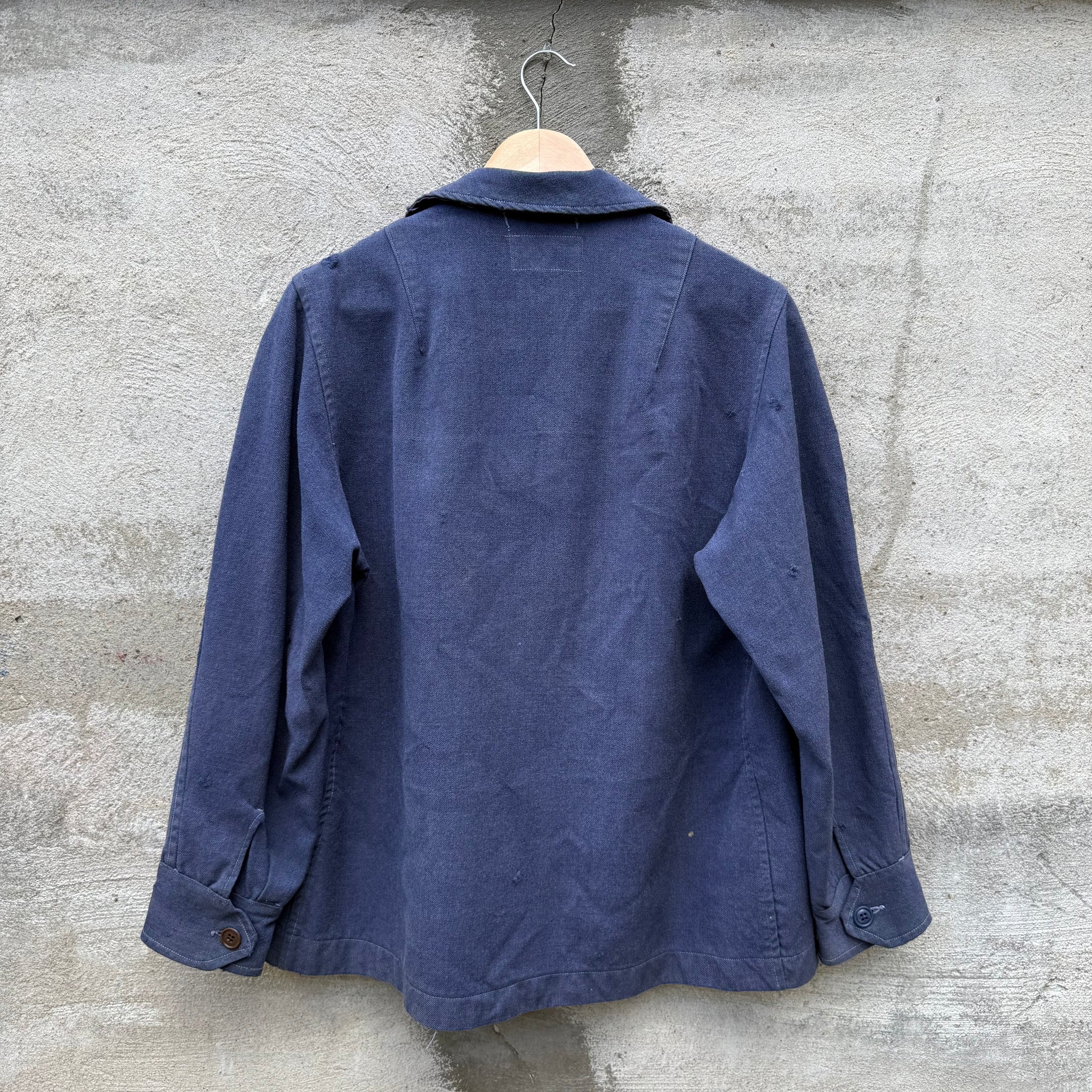 General wear, check all measurements before purchasing, no refund will be allowed all information is provided in each description. Chest is across pit 2 pit measurement, length is from top of collar to the bottom hem, sleeve is outer sleeve length, shoulder is from the shoulder point across just like chest.USAF Flying heavy shirt, chore coat style, 4 front flap pockets, USAF True Vintage, 1950's black tag, very rare jacket, Made In USA, military issued, true vintage jacket, wool blend, nice breathable and also warm layering jacket, button closer, some flaws and minor holes and wear throughout and repairs shown in photos.,faded navy blue color, 100% wool, Type A-1A, Lion Uniform Company.