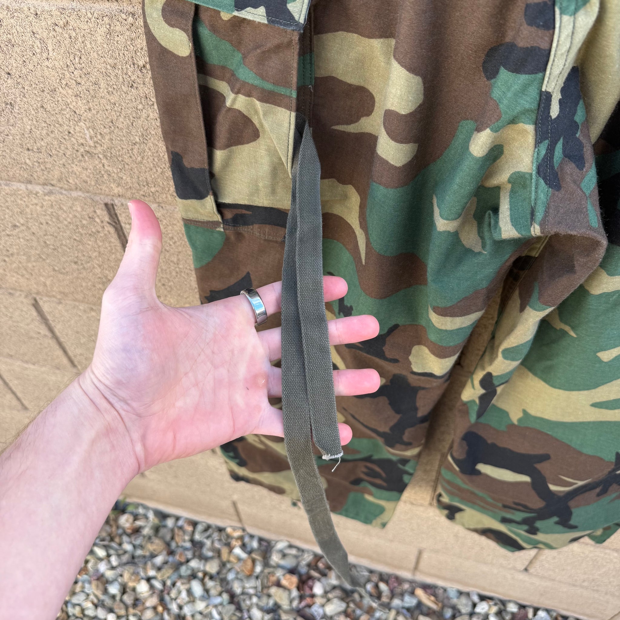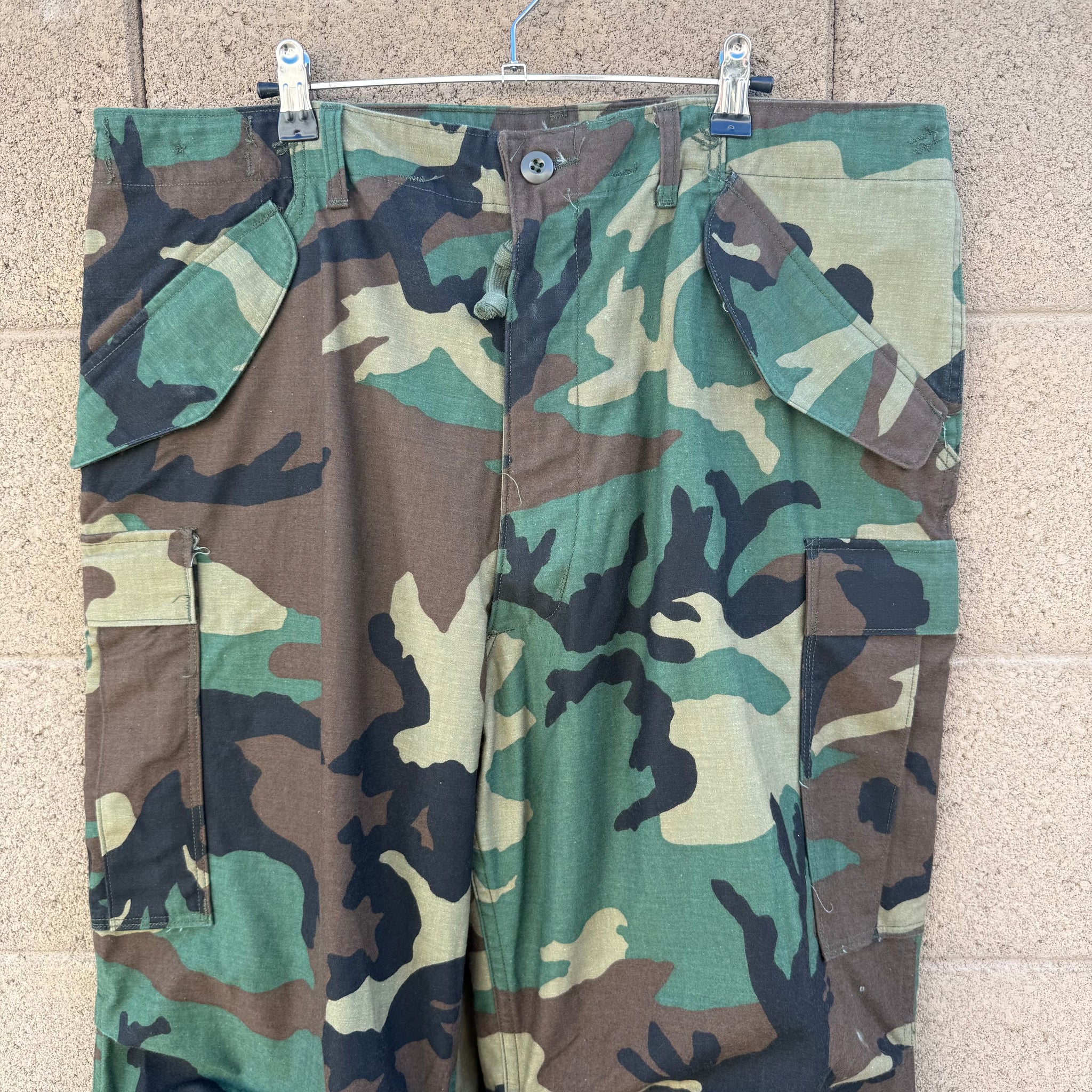 General wear, check all measurements before purchasing, no refund will be allowed all information is provided in each description. 1985 US Military M-65 Field Cargo Trousers represent the gold standard of vintage tactical apparel, featuring the iconic woodland camouflage pattern and a heavy-duty construction designed for extreme durability. A staple of the Cold War era, these trousers are engineered with the classic M-65 silhouette, including oversized cargo pockets, adjustable waist tabs for a customized fit, and a robust fabric blend that captures the true essence of military utility. True Vintage, genuine surplus. recommend verifying the measurements for the waist, inseam, front rise, leg opening, hip, and thigh before purchase, as no refunds will be permitted since all technical and condition details are fully provided in this description.