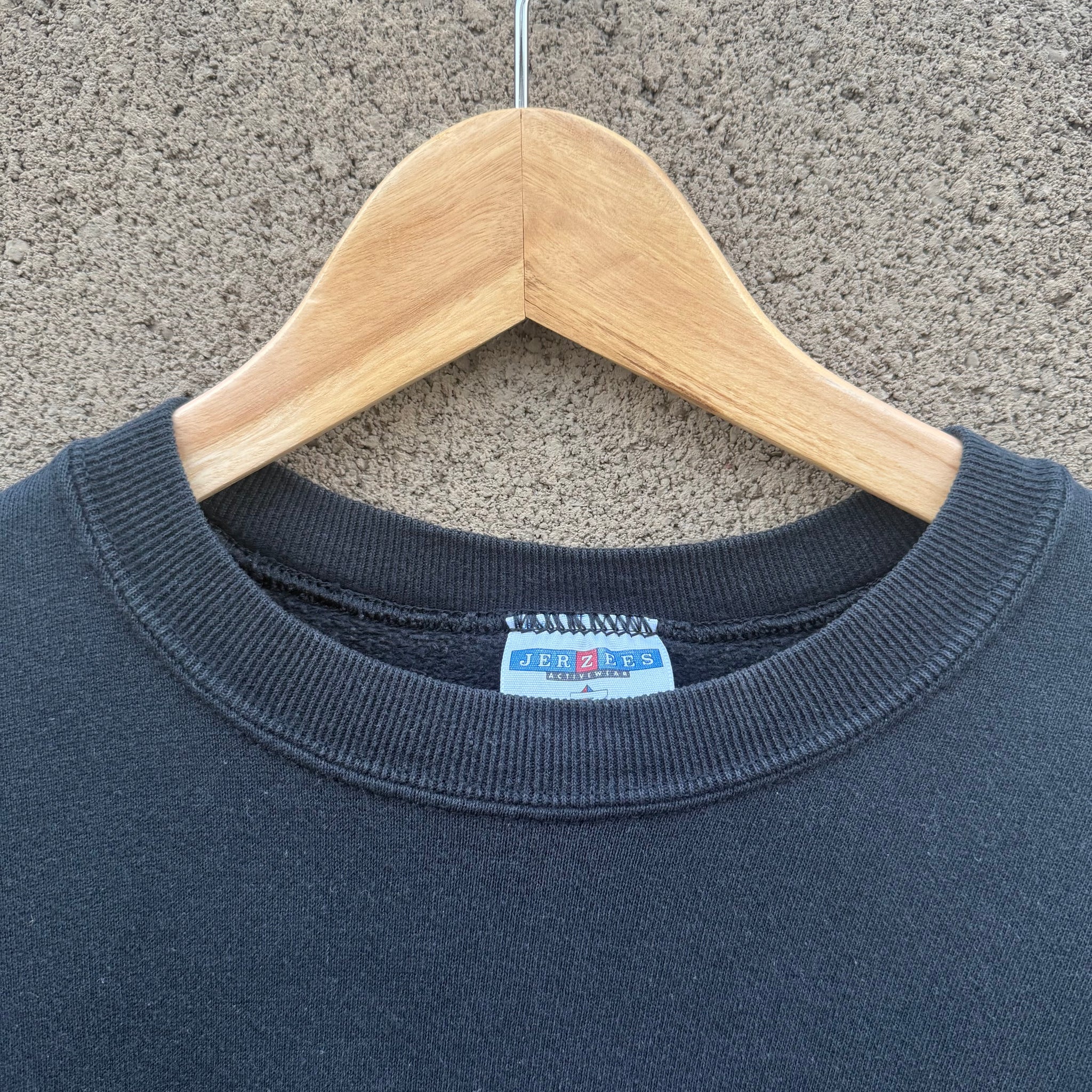 General wear, check all measurements before purchasing, no refund will be allowed all information is provided in each description. Chest is across pit 2 pit measurement, length is from top of collar to the bottom hem, sleeve is outer sleeve length, shoulder is from the shoulder point across just like chest. Made In USA, 90's faded black crewneck sweatshirt. JERZEES tag, thick cotton sweat, vintage black worn in quality cotton crewneck sweat, no major flaws, some light wear but nothing major.
