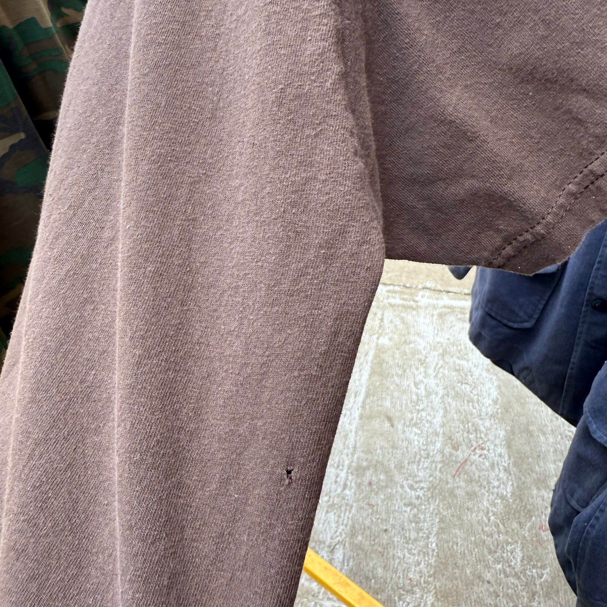 General wear, check all measurements before purchasing, no refund will be allowed all information is provided in each description. Chest is across pit 2 pit measurement, length is from top of collar to the bottom hem, sleeve is outer sleeve length, shoulder is from the shoulder point across just like chest. Nick Holiday brand, vintage thick chocolate brown shirt, script holiday print, nice faded brown, some light pin holes shown in the photos. no other major flaws. great fall shirt, thick cotton blank